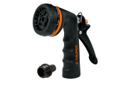 Нет в наличии Пистолет-распылитель со штуцерной посадкой и удобным курком, расположенным спереди. Оснащен регулируемой форсункой, что обеспечивает семь режимов полива: двойную плоско-вертикальную струю, жесткую струю, сочащийся режим, двойную плоско-горизонтальную струю, душ, распыление типа «туман», конусное распыление. |