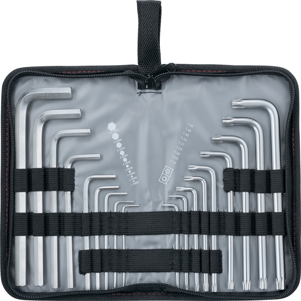 12315 Набор ключей имбусовых HEX-TORX, 18 шт: HEX 1,5–10 мм, T10-T50, CrV, удлиненные, сатин. MATRIX