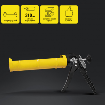 КН02ЦГ Пистолет для герметиков полукорпусной, со стикером, упакован в прозрачный пакет KOLNER KCG 02