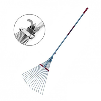 Имеют 15 зубьев. Грабли раздвижные. Имеют легкий алюминиевый черенок и металлический зажим-фиксатор. Пластиковая ручка для удобной навески. -