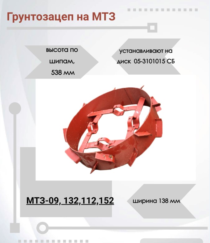 Высота грунтозацепов, мм 538 Гарантия, мес. 24 Страна-производитель Беларусь Ширина, мм 138 -