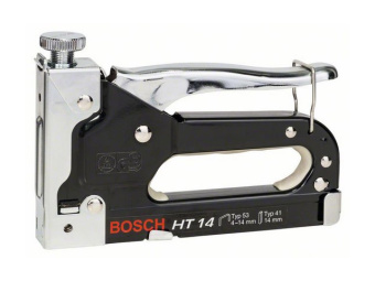 Механический степлер Bosch НТ14 0.603.038.001 предназначен для выполнения работ по обтяжке тканью мебели, а также креплению изолирующего материала, парниковой пленки и пр. Используемый тип скоб 53. Используемый тип штифтов 41.
