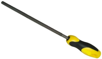 Круглый рашпиль используют для шлифования дерева, пластмассы, стеновой плиты. Рукоятка с антискользящим покрытием обеспечивает крепкий хват инструмента.
