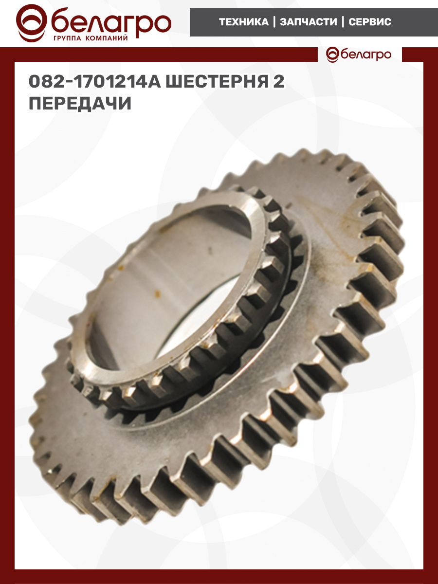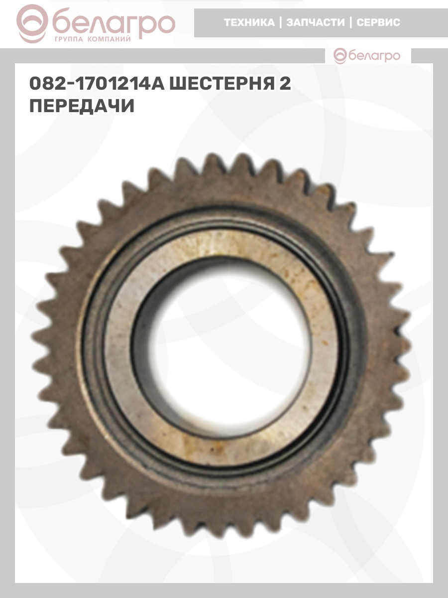 Шестерня 082-1701214А используется в коробке передач мини-трактора типа Беларус 082/112/132 и малогабаритного трактора 152 для 2-й скорости переднего хода.