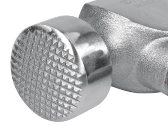 Он оснащен гвоздодером с одной стороны, а с другой - рифленым бойком с круглой ударной частью.