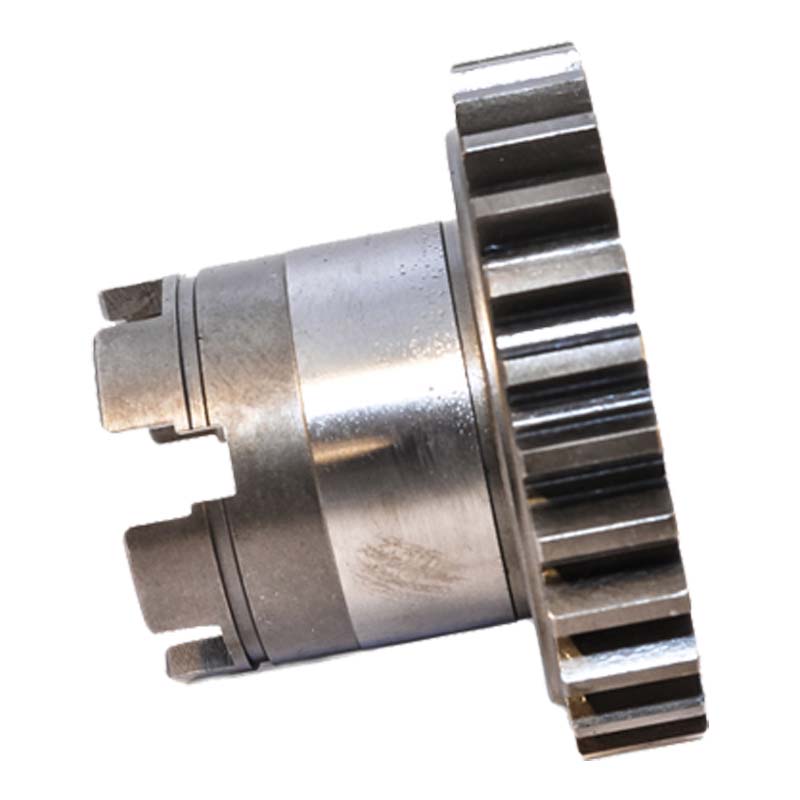 Шестерня промежуточного вала коробки передач. Устанавливается на промежуточный вал КПП, которая передает вращение (через эту и другие шестерни) к последующим зубчатым парам. Используется также как шестерня привода синхронного ВОМ (вал отбора мощности), когда она входит в цепочку передач КПП.