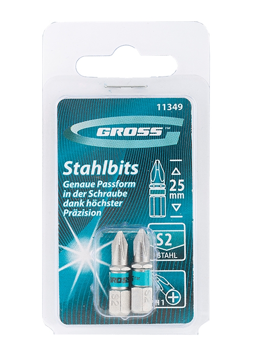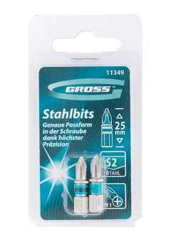11349 Набор бит GROSS РН1х25, сталь S2, 2шт
