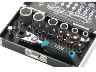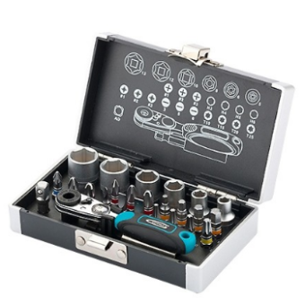 В наборе 17 бит, изготовленных из высококачественной инструментальной стали S2, со шлицами PH1, PH2, PH3, PZ1, PZ2, PZ3, T10, T15, T20, T25, T27, T30, T40, H3, H4, H5 и H6.
