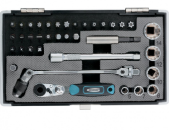 Набор бит и торцевых головок торговой марки GROSS предназначен для монтажа/демонтажа резьбовых соединений при проведении слесарно-монтажных работ. Трещотка оснащена эргономичной двухкомпонентной рукояткой, которая удобно располагается в руке и не выскальзывает во время наибольшего крутящего момента.