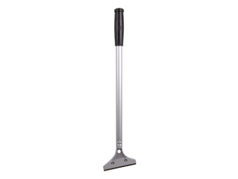 Скребок изготовлен из стали и имеет фиксированное лезвие. Ручка длиной 40 см позволяет работать в труднодоступных местах. Оснащен прочной металлической рукояткой, покрытой противоскользящим пластиком. Возможность замены лезвий обеспечит долгий срок службы инструмента.