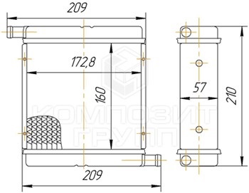 1216К.8101060 Радиатор отопителя МТЗ патрубки в разные стороны (алюминий)