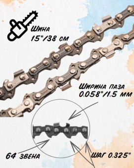 130180 Цепь 325-1,5мм-64 (15")