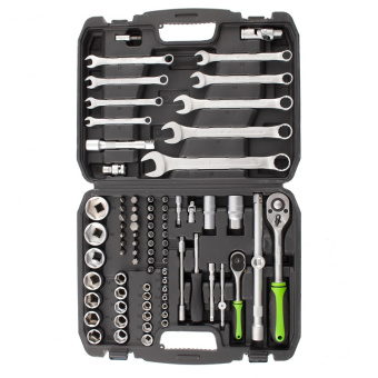 Набор инструмента Сибртех 13500, 1/2 и 1/4 дюйма, состоит из 83 предметов и предназначен для ремонта и обслуживания автомобилей, а также выполнения бытовых работ. Имеющиеся в комплекте насадки рассчитаны на крепеж с различными типами профилей и шлицев, включая HEX и TORX. Набор будет полезен профессиональным мастерам и автолюбителям.