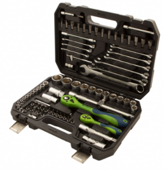 Набор инструментов Сибртех 13514, 1/2 и 1/4 дюйма, упакован в пластиковый кейс и состоит из 82 предметов из стали CrV-группы, предназначенных для слесарных работ, преимущественно монтажа и демонтажа резьбовых крепежей с разными типами шлицев. В комплект входят карданы, удлинители и переходники, облегчающие работу в труднодоступных местах. Набор используется для ремонта автомобилей, а также полезен в быту.