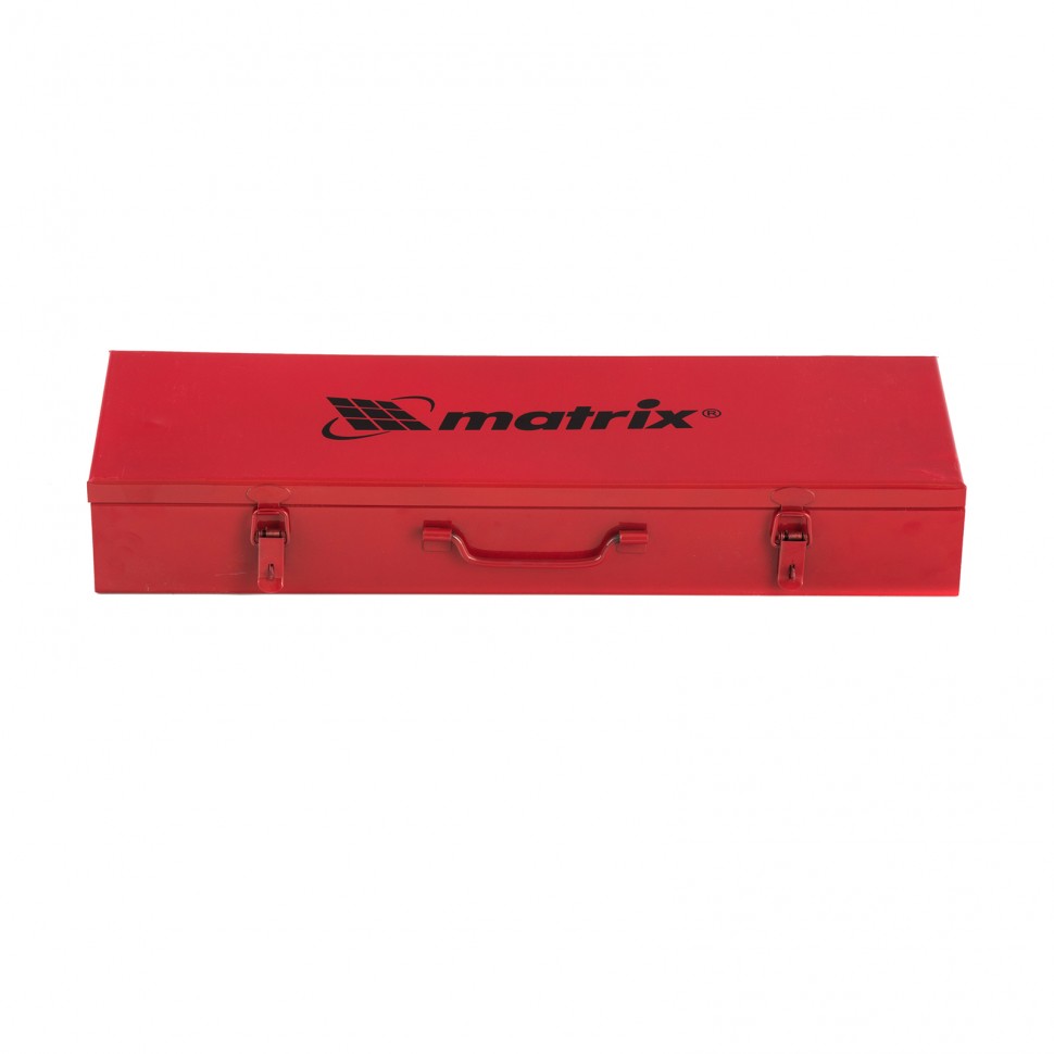 Инструменты изготовлены из хромованадиевой стали, имеют полированное хромовое покрытие и упакованы в металлический кейс.
