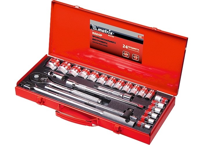 13582 Набор шоферский с квадратом MATRIX 1/2", 24 предм.