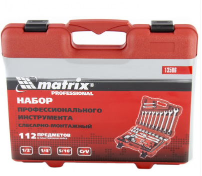 13586 Набор слесарно-монтажный MATRIX с квадратами, 1/4", 1/2" 5/16", 112 пр