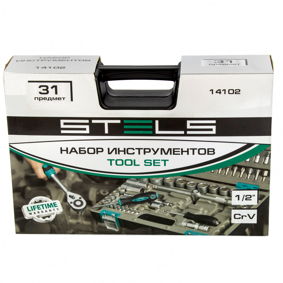 -14102 Набор инструментов STELS, 1/2", CrV, пластиковый кейс 31 прБитыГубцевый инструментДиски, кругиЗаклепочники, степлерыЗубило, ломы, гвоздодерыИзмерительные приборыИзолента,стяжки, зажимные повязкиКлючи, наборы ключейКрепежиМалярный инструментМолотки и кувалдыНапильники, рашпили, надфилиРежущий инструментСистема храненияОтвертки, наборы отвертокПилки для лобзиков, ножи для рубанковПлашки, метчики, резцыПрижимные приспособленияСверла и бурыСъемникиТопоры, стамескиЩетки проволочныеШлифование и полированиеШприцы, пистолеты, наборы покрасочныеЭлектропаяльникиНабор насадок для гравераМасленки, нагнетателиСредства защитыЭкстракторы