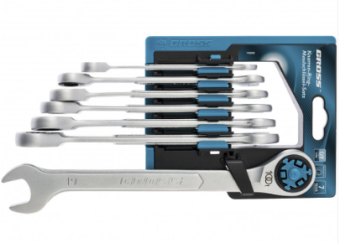 14859 Набор ключей комбинированных трещоточных GROSS, СRV, 7 шт. 8-19 мм