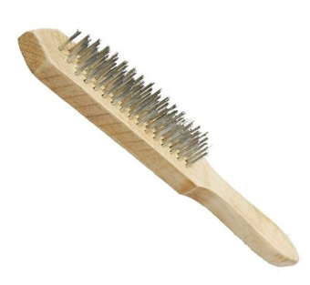 Проволочную щетку используют для очистки металлических поверхностей от коррозии, старой краски, грязи.