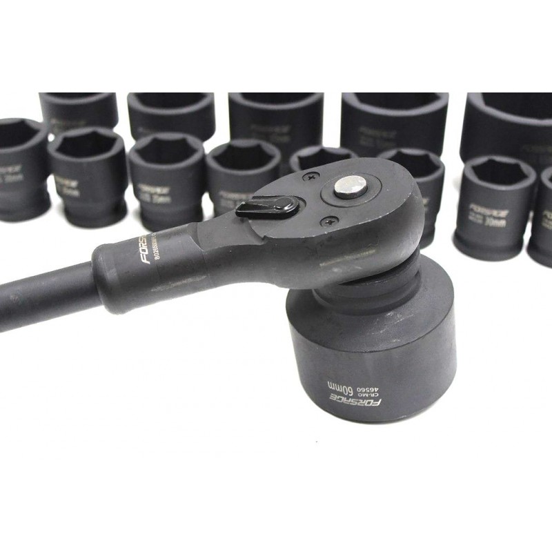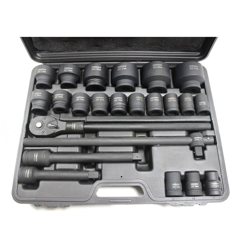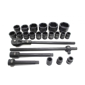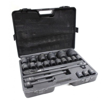 Комплектация Торцевые головки: 17, 19, 21, 22, 24, 27, 30, 32-36, 38, 41, 46, 50мм; Торцевые головки удлиненные: 55, 60, 65мм.