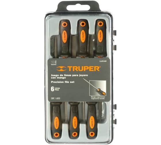 Набор прецизионных напильников с ручкой 6 шт 152 мм Truper LIJO-6X 15240 является комплектом ручного инструмента, который предназначен для заточки заготовок, обработки материалов и срезания заусенцев.