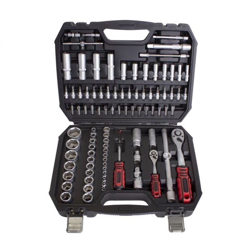 Комплектация: головки 1/4"короткие 25 мм: 4, 4.5, 5, 5.5, 6, 7, 8, 9, 10, 11, 12, 13, 14 мм головки 1/4"глубокие 50 мм: 6, 7, 8, 9, 10, 11, 12, 13 мм головки-биты 1/4"HEX 35 мм: 3, 4, 5, 6 мм головки-биты 1/4"TORX 35 мм: T8, T10, T15, T20, T25, T30 головки-биты 1/4"SL 35 мм: 4, 5.5, 6,5 головки-биты 1/4"РН 35 мм: РН.1, РН.2 головки-биты 1/4"PZ 35 мм: PZ.1, PZ.2 трещотка 1/4" рукоятка 1/4"150 мм вороток Т-образный 1/4"115 мм удлинители 1/4"50, 100 мм гибкий удлинитель 1/4"145 мм кардан шарнирный 1/4" бита 5/16"HEX 30 мм: 8, 10, 12, 14 мм бита 5/16"TORX 30 мм: Т40, Т45, Т50, Т55 бита 5/16"SL 30 мм: 8, 10, 12 биты 5/16"PH 30 мм: PH.3, PH.4 биты 5/16"PZ 30 мм: PZ.3, PZ.4 головки 1/2"короткие 38 мм: 10, 11, 12, 13, 14, 15, 16, 17, 18, 19, 20, 21, 24, 27, 30, 32 мм головки 1/2"глубокие 77 мм: 14, 15, 17, 19 мм головки свечные 1/2"16, 21 мм трещотка 1/2" удлинители 1/2": 125, 250 мм кардан шарнирный 1/2" адаптер с отверстием с 3/8"(F)*1/2"(M) битодержатель 1/2"(F)*5/16"(F) адаптер-переходник под шуруповерт 1/4"30 мм 6 гранники Г-образные короткие: 1.5, 2, 2.5 мм Пластиковый кейс -