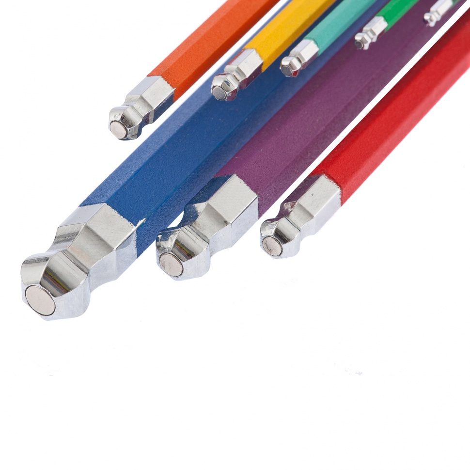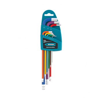 16400 Набор ключей имбусовых HEX, 1,5–10 мм, S2, 9 шт., магнит, экстра-длин. с шаром, хром/краска GROSS