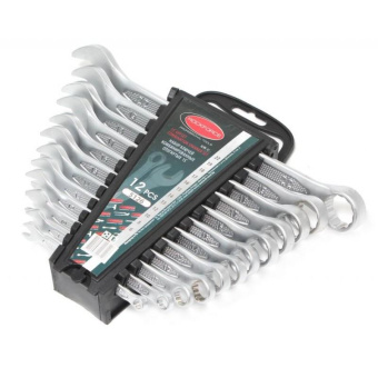 Ключи комбинированные - рожково-накидные, накидная часть с изгибом 15 градусов. Размеры: 6, 8, 10, 12, 13, 14, 15, 16, 17, 18, 19, 22 мм. В пластиковом