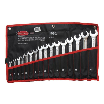 Ключи комбинированные - рожково-накидные с профилем "Super Drive"(12 граней). Размеры: 6, 7, 8, 9, 10, 11, 12, 13, 14, 15, 16, 17, 18, 19, 21, 22 мм. На полотне.