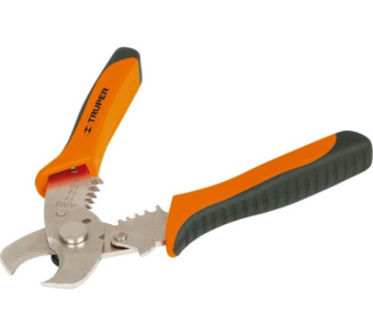 Инструмент для снятия изоляции TRUPER PE-CA-7X 17378 - это шарнирно-губцевый инструмент с прочной рабочей частью. Губки имеют ножи для обрезки кабелей до 15 мм и 4 паза для снятия изоляции с проводов 8; 10; 12 и 14 AWG. Удобные двухкомпонентные рукоятки не скользят при выполнении работ.
