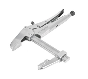 Зажимные клещи струбцины изготовлены из кованной стали. Ее назначение — это фиксация детали в круговом зажиме или общем. Важно отметить, что зажимное усилие легко сохраняется в любом положении инструмента. А из-за того, что вся конструкция цельнометаллическая она способна выдержать высокую нагрузку во время эксплуатации.