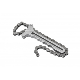При использовании цепь просто располагается вокруг фильтра и при повороте затягивается до диаметра фильтра.