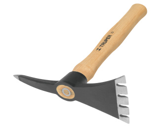 Мотыга-кайло TRUPER 19815 предназначена как для колки твердых материалов, так и для ухода за грядками. Рабочая часть выполнена из высокоуглеродистой стали, что обеспечивает высокую прочность и долгий срок службы. Деревянная рукоятка удобно лежит в руке. Инструмент прост и эффективен в эксплуатации.