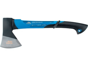 Плотницкий топор с рабочей частью весом 800 г и двухкомпонентной обрезиненной рукояткой имеет полукруглую режущую кромку, поэтому легко рубит древесину разных пород.