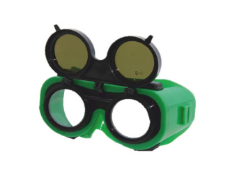 Очки с откидным блоком из термостойкой пластмассы с защитными минеральными стеклами и внутренними стеклами из бесцветного поликарбоната РС. Конструкция 2 в 1 позволяет вести работы: с опущенным стеклодержателем - связанные с опасным для глаз излучением, с поднятым стеклодержателем - связанные с защитой глаз от воздействия твердых частиц.