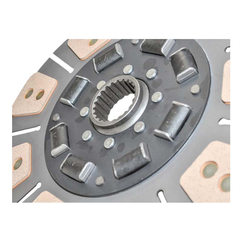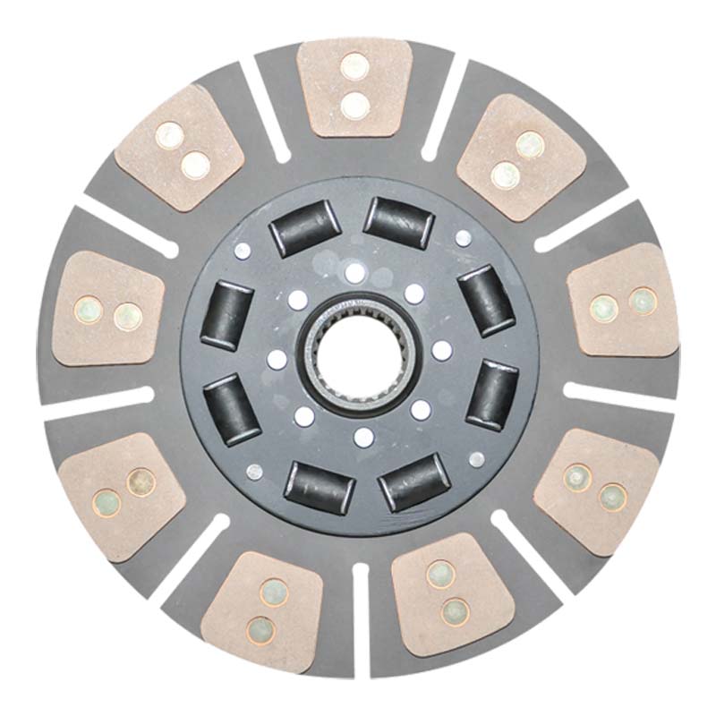 Ведомый диск сцепления — элемент, который устанавливается между нажимным диском (корзиной) и маховиком. При нормальной работе сцепления он зажимается корзиной к маховику, передавая крутящий момент от двигателя на трансмиссию. При выжиме педали — размыкается, отключая передачу двигателя от КПП. Он рассчитан на работу в двухдисковой муфте сцепления в более мощных тракторах.