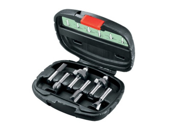 Набор фрез по дереву 6 предметов BOSCH включает в себя: карнизную фрезу с подшипником (используется для придания округлых форм);