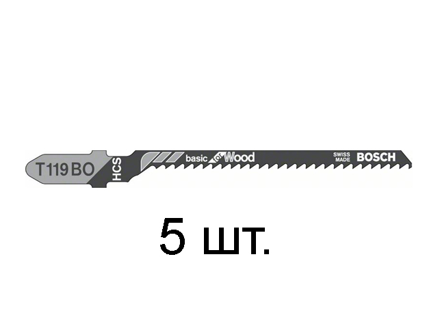 2608630310 Пилка лобзиковая по дереву T119BO (5 шт.) BOSCH (пропил криволинейный, грубый, для базовых работ)