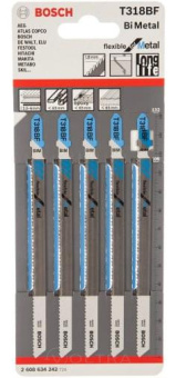 2608634242 Пилка лобзиковая по металлу T318BF (5 шт.) BOSCH (пропил прямой, тонкий,)