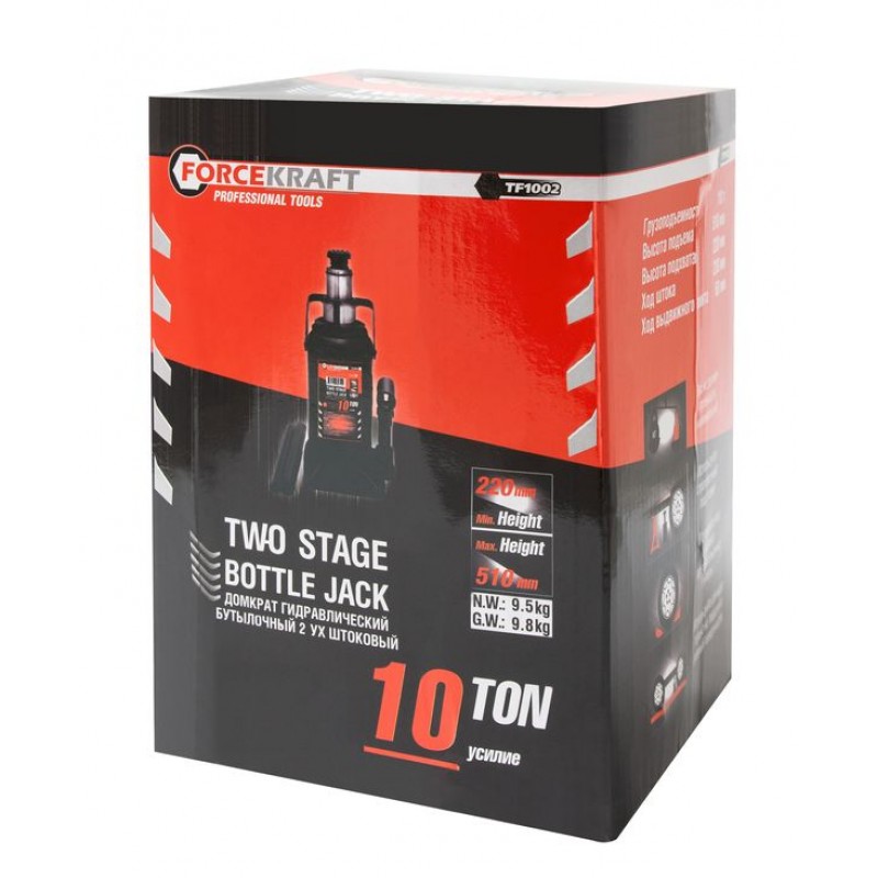26590 FK-TF1002 Домкрат бутылочный FORCEKRAFT 10т с клапаном двухштоковый
