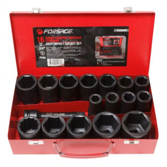 28567 F-6163MPB Набор головок ударных глубоких с удлинителем 150мм FORSAGE, 16 пр