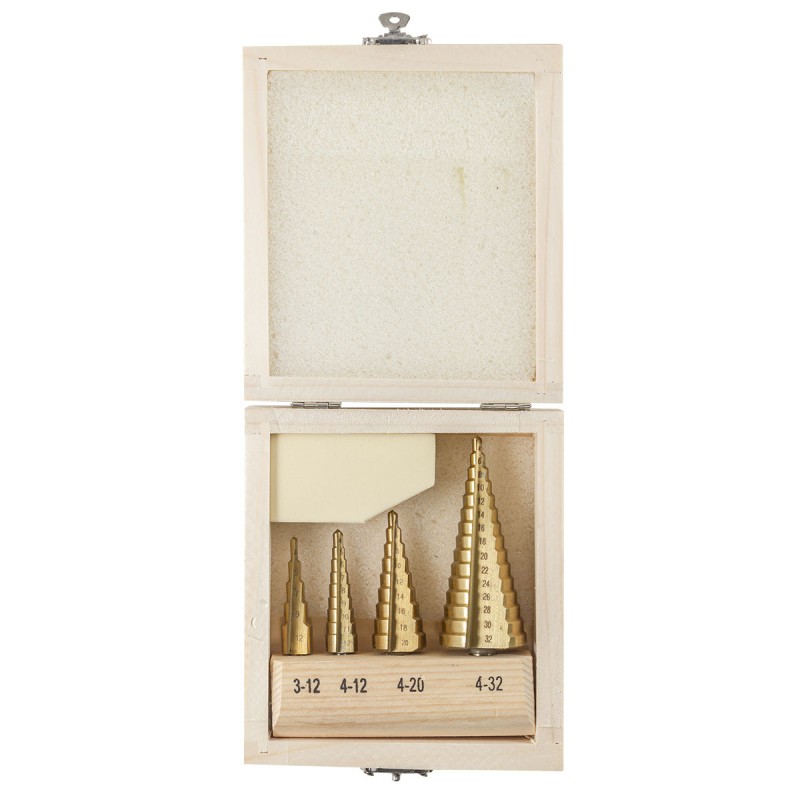 Набор сверл ступенчатых Forsage из 4 штук в кейсе изготовлен из высококачественной инструментальной быстрорежущей стали HSS 4241.
