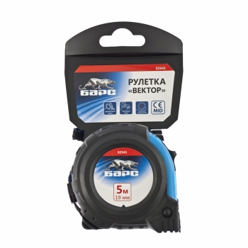 32541 Рулетка Вектор 5 м х 19 мм, утолщенное полотно, магнитный зацеп, обрезинен