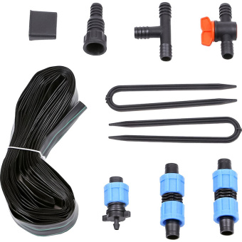 Система полива на основе капельной ленты с эмиттерами подойдёт для начинающих «автоматизаторов». Продуманная комплектация, в которую входят все необходимые для подключения системы к емкости фитинги, позволит быстро и без усилий смонтировать полив на грядке. А доступная цена данного комплекта сэкономит семейный бюджет.