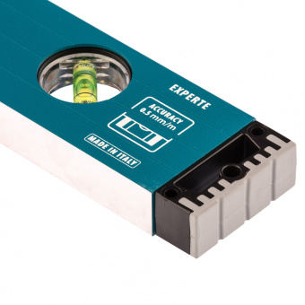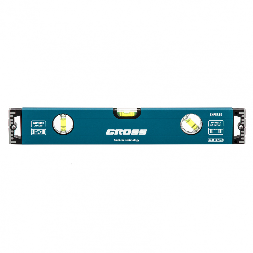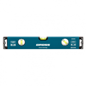 Усиленный двухкамерный профиль, устойчивый к скручиванию; двухкомпонентные заглушки, гасящие удары при падениях; удобные резиновые рукоятки и фрезерованная подошва — все это отлично сочетается в строительном уровне GROSS EXPERTE.