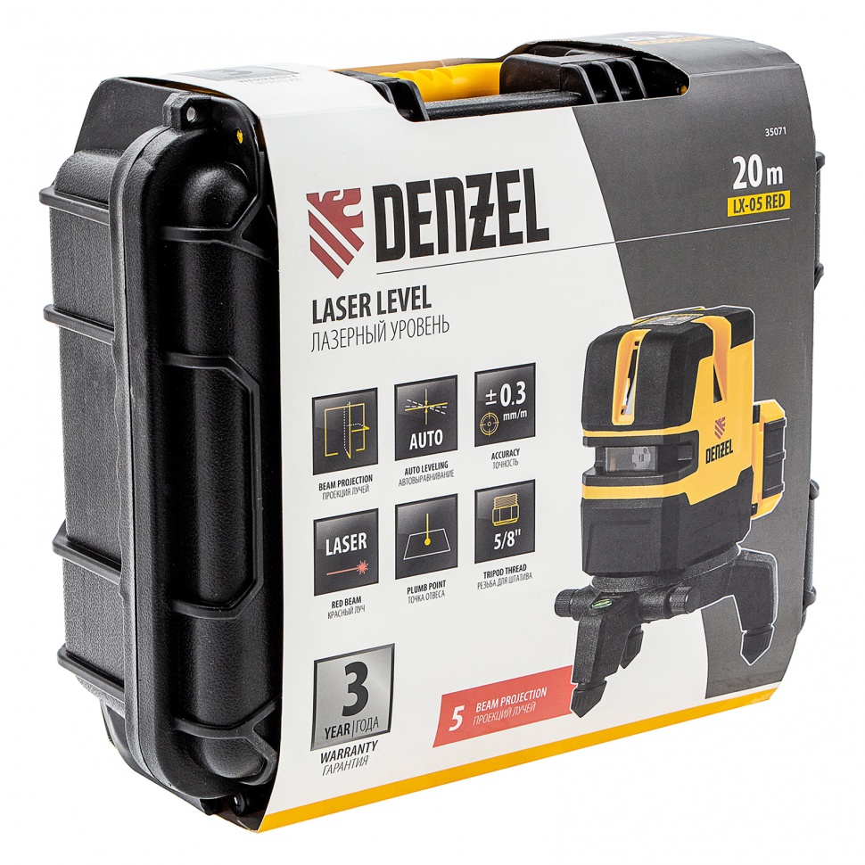 Лазерный уровень Denzel LX 05 Red 35071 предназначен для построения линий разметки на стенах, полу и потолке при проведении строительно-ремонтных работ.