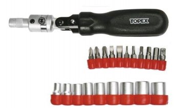 39D515C Отвертка-трещотка с набором насадок TOPEX, 21 пр