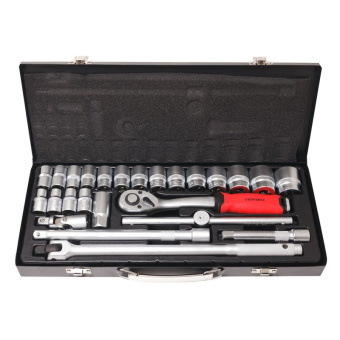 Торцевые головки: 10-32мм - Удлинители 5"", 10"" - Т-образный вороток - Кардан - Вороток шарнирный - Свечная головка 21мм - Трещотка