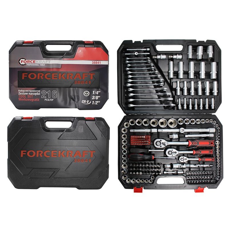 47292 FK-38841 Набор инструментов FORCEKRAFT, 216 пр (6 граней)